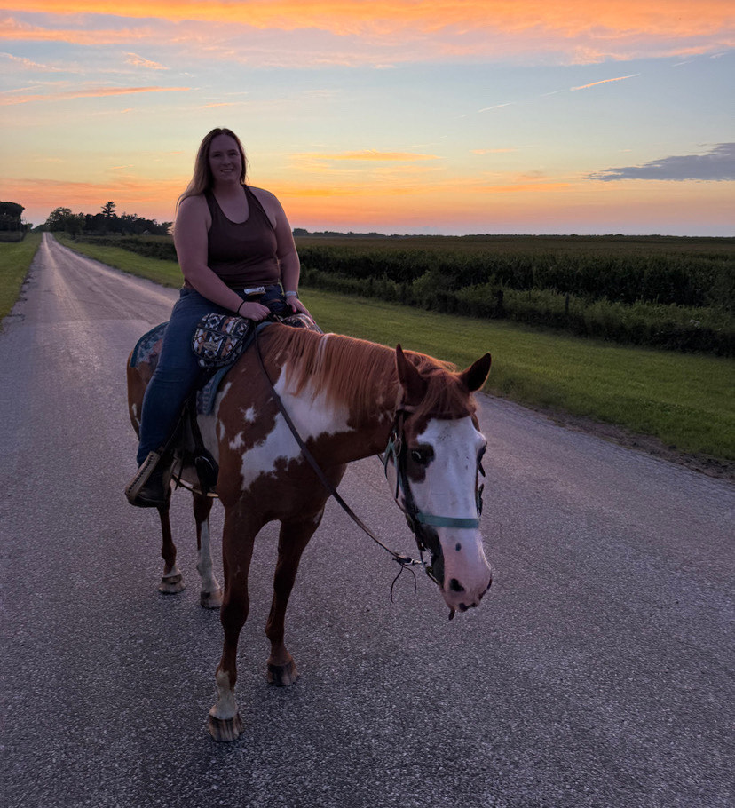 Haley likes to spend her free time outside and often is riding horses on her farm or spending time with her husband and daughter. She has 4 dogs (Ivy, Pax, Pig, and Molly), 3 horses, 1 mule, and too many goats to name. Haley is your typical hard-working farm girl!